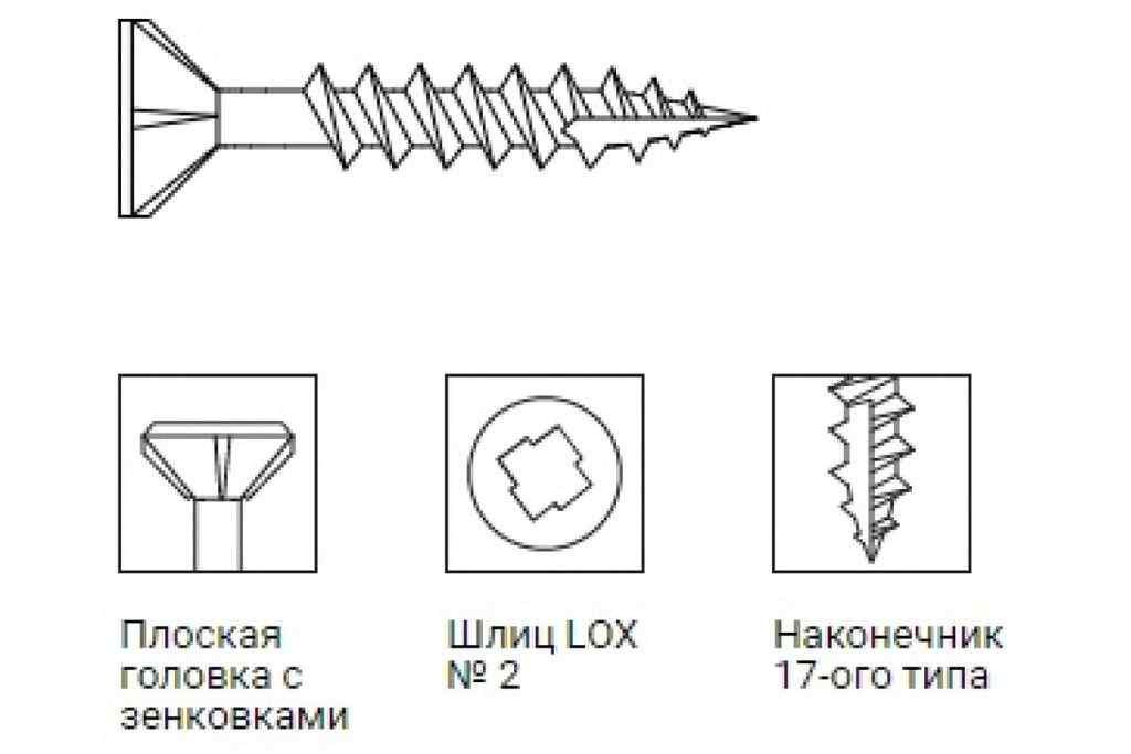 • Насечки под шляпкой обеспечивает полную утапливаемость головки самонарезающего винта без предварительного рассверливания и зенкования в листовом материале