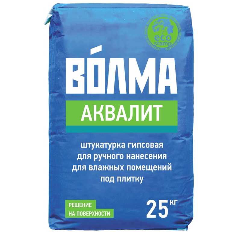 ВОЛМА-Аквалит - сухая штукатурная смесь на основе гипсового вяжущего, легкого заполнителя, минеральных наполнителей и модифицирующих добавок, обеспечивающих высокую адгезию, водоудерживающую способность и оптимальное время работы